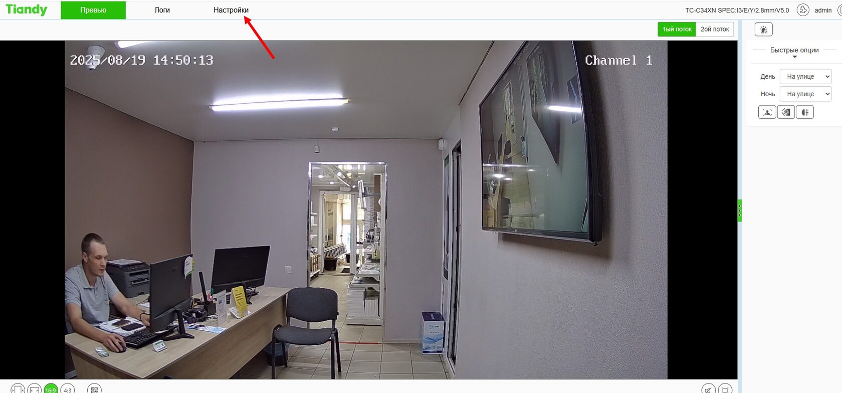 Web-интерфейс камеры, на примере камеры Tiandy.
